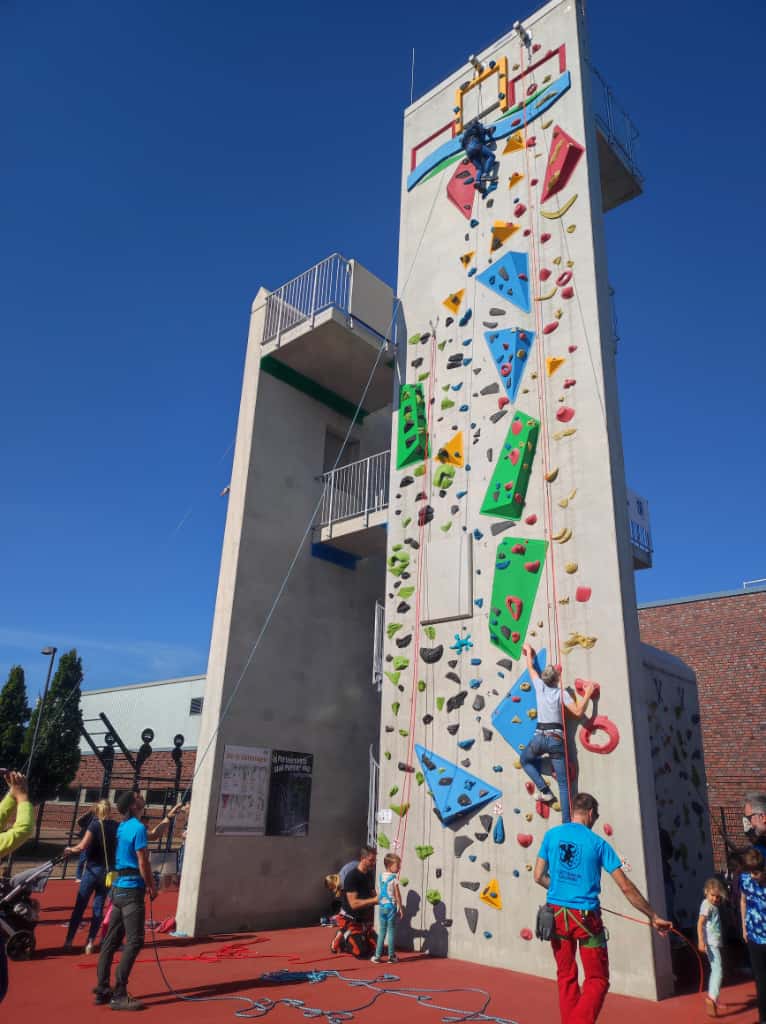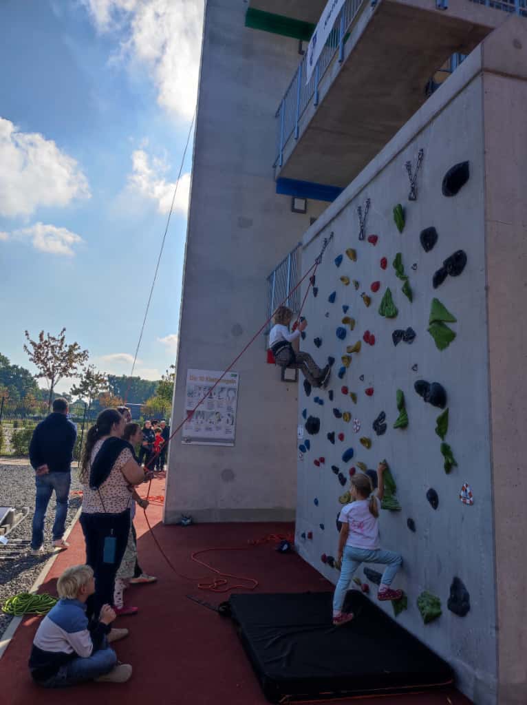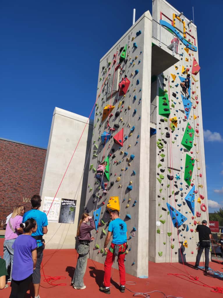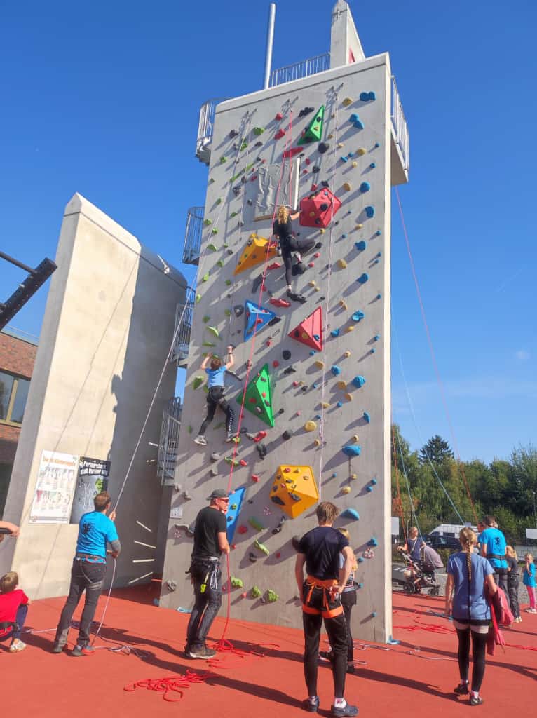 Bei bestem Spätsommerwetter haben viele den Weg zum Kletterturm gefunden – neugierig darauf, den Turm oder das Klettern selbst einmal auszuprobieren.