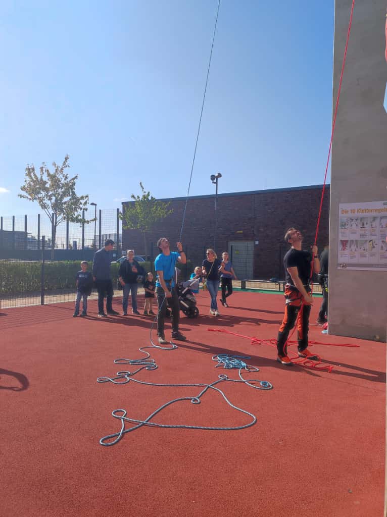 Unsere Übungsleiterinnen und Übungsleiter hatten alle Hände voll zu tun, beantworteten geduldig jede Frage und halfen allen, die den Schritt an die Wand wagten, mit Ruhe und Erfahrung. Egal ob Neulinge oder erfahrene Kletterer – alle kamen auf ihre Kosten und hatten sichtbar Spaß.